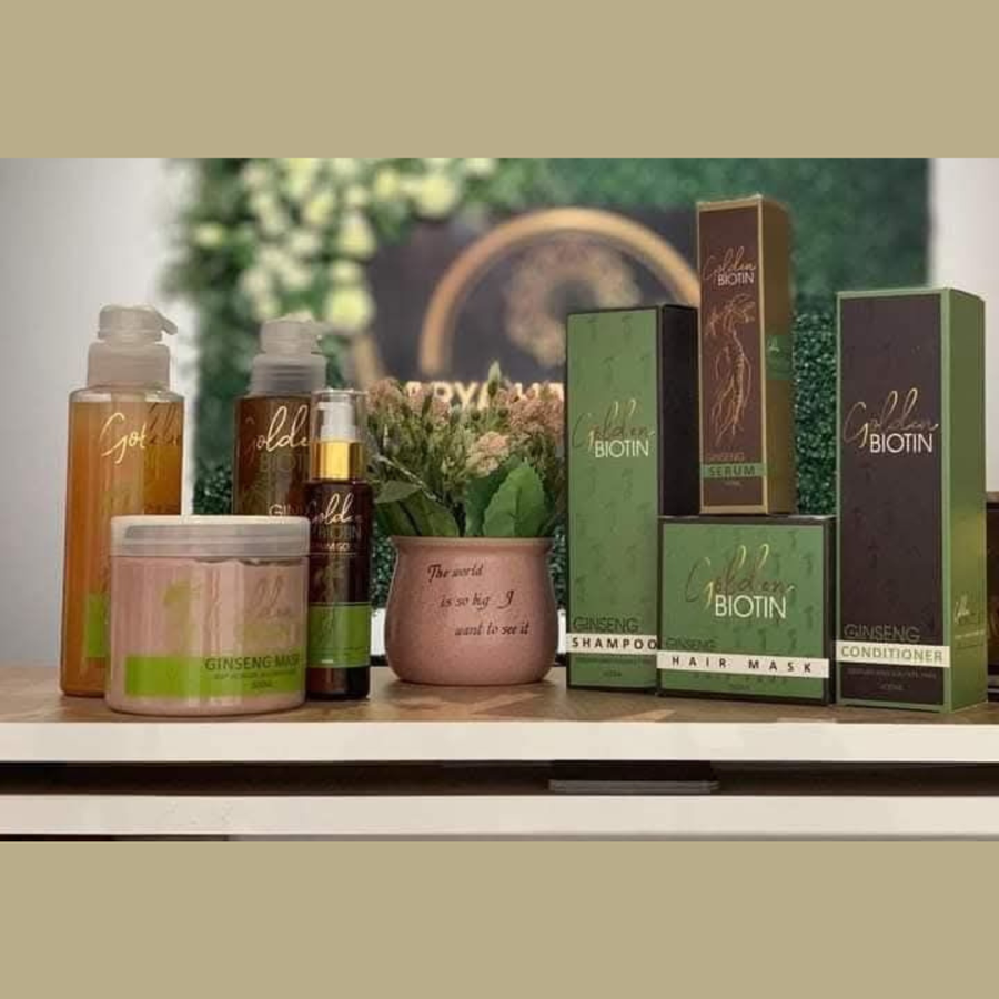 مجموعة جولدن بيوتين بعشبة الجينسنج العلاجية 🍃وجزيئات الدهب 24k والكولاجين ✨